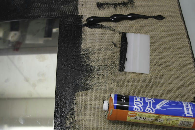 ジュートにシリコーンコーキング材を塗り込み、ステンレス板を所定の位置に接着します.