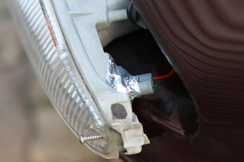 小豆色のコンビネーションランプのハーネス交換.
