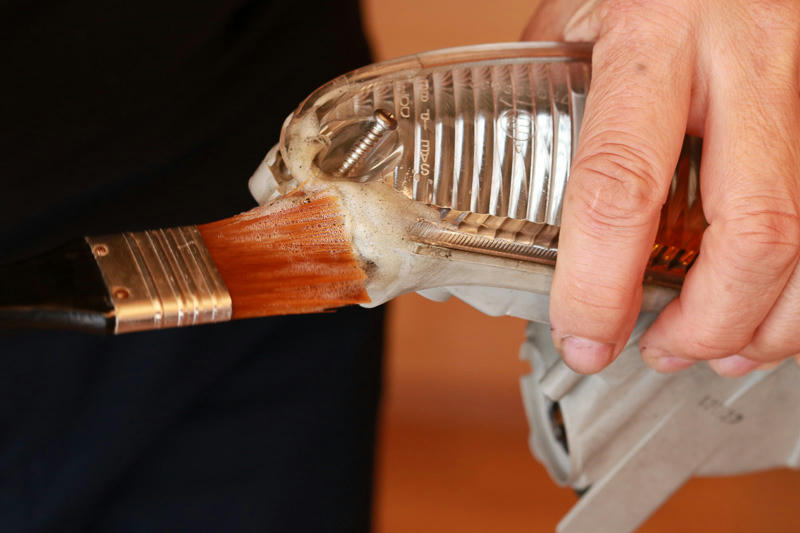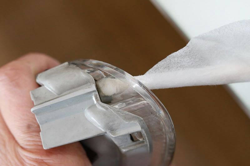カメラのお掃除に使う木の棒に巻いたシルボン紙、アルコールを含んだ先端がスキマに深く入り込んで良い具合.