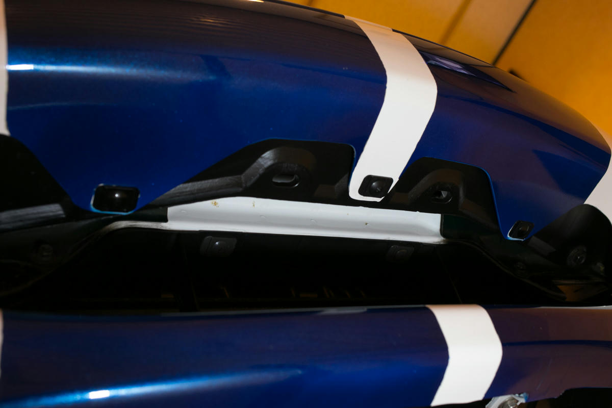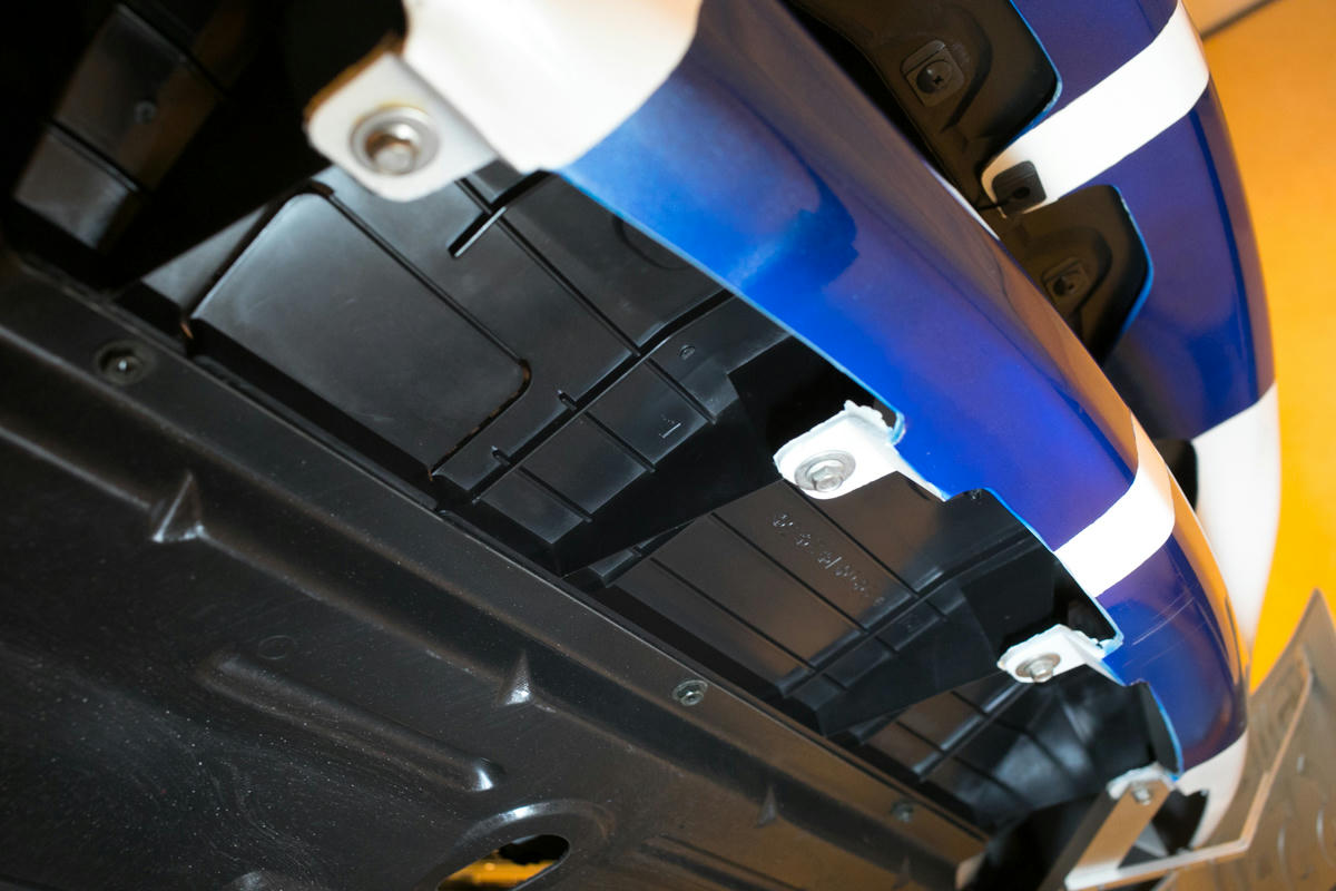 バンパーの中、上部のファスナーが余計に付いていたので取り外す.