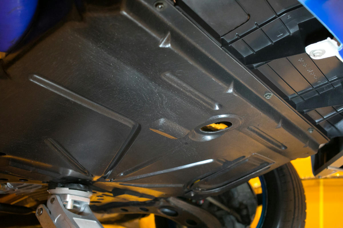 フィルターをていねいに外してこぼれたオイルをお掃除、ついでにアンダーカバーをお掃除.