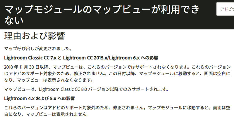 最近うるさいメッセージが出なくなったかと思ったら今日はマップを表示しなかったLightroom、調べたら案の定「Adobeの嫌がらせ」だった.