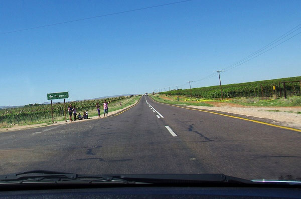 出発してすぐ、ヒッチハイク待ちの黒人のおじさんが大アピールしてきて、たしかにこの道は交通量が少なくて捕まえるの大変だろうなぁとは思ったのですが、やはりトラブルが怖くて、つい日本風に「ごめんなさい」と手のひらを顔の前に出して謝ったら、親指を立てて「いいよいいよ」という笑顔で返事が返ってきました。