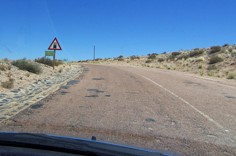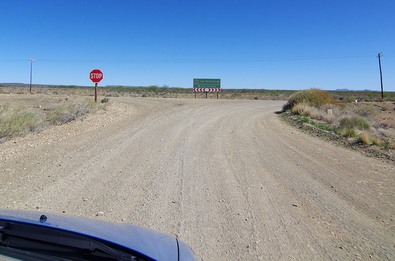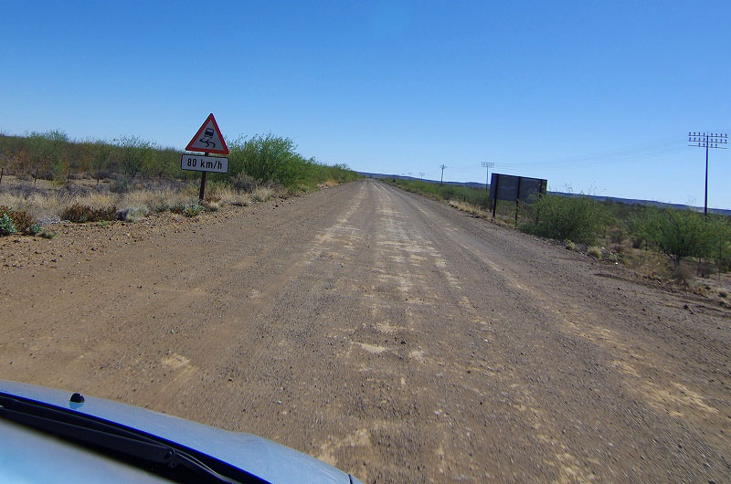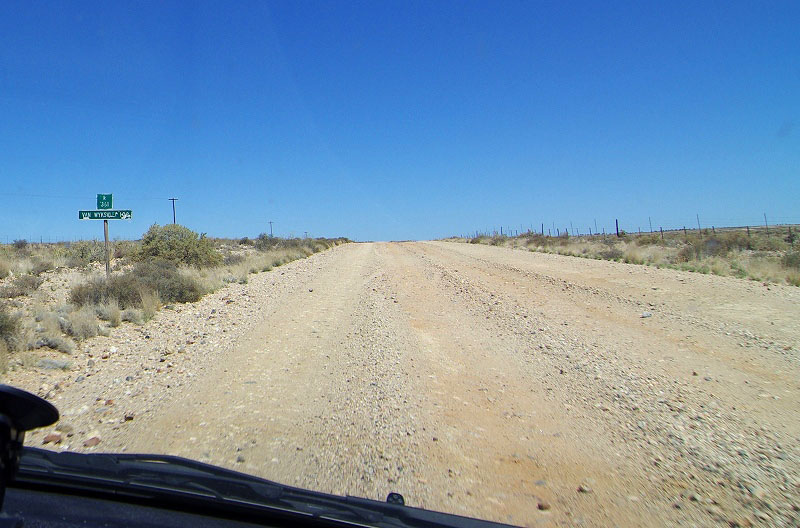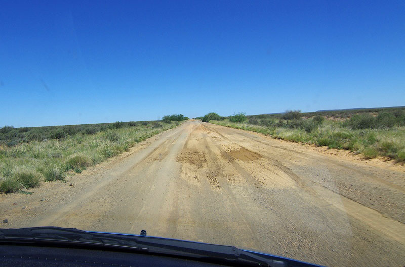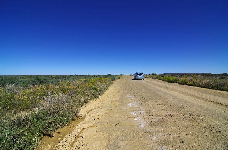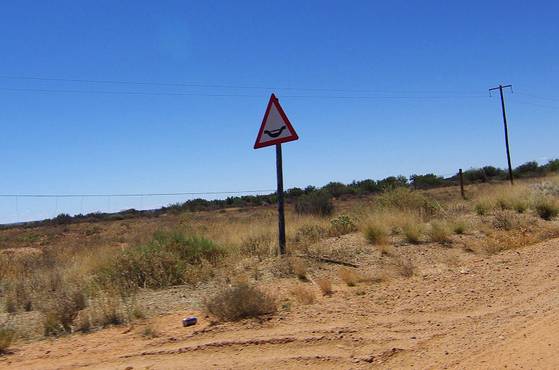 こちらは別のコースで、看板には(Nuweveld route (20km) and Afsaal loop(13km))と出て居たのですが、下に「四駆オンリー」と書かれていたので、そのまま直進します。