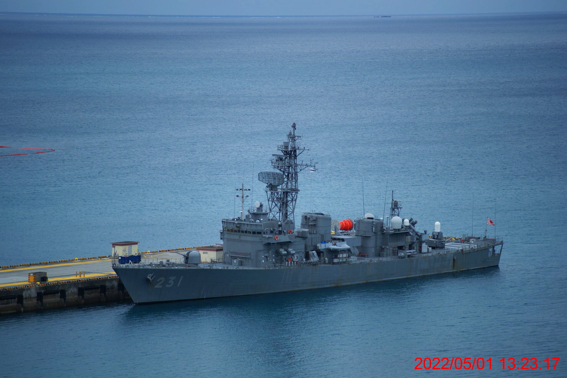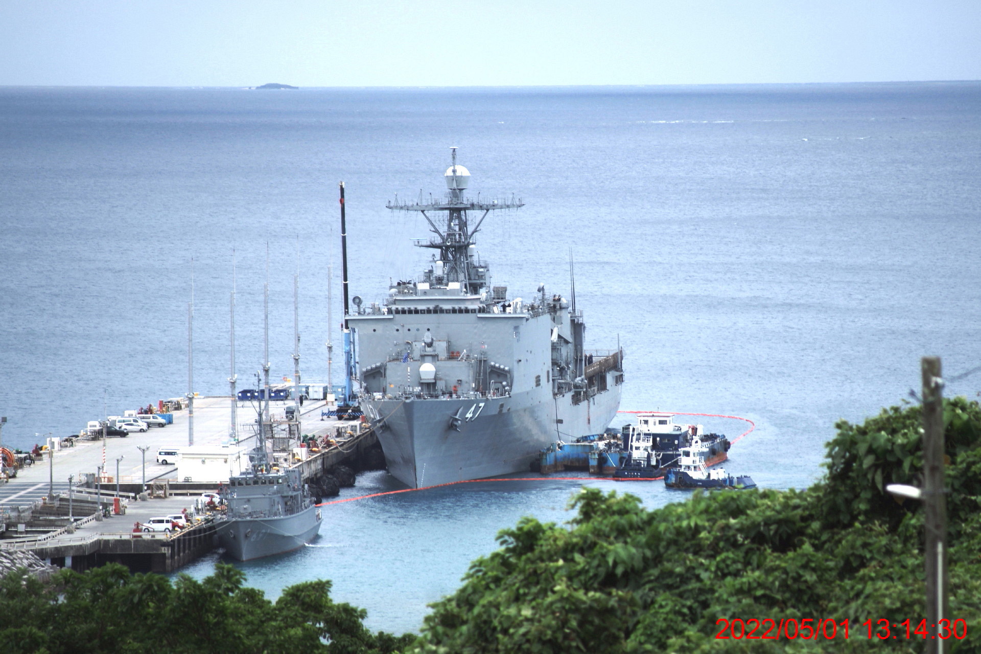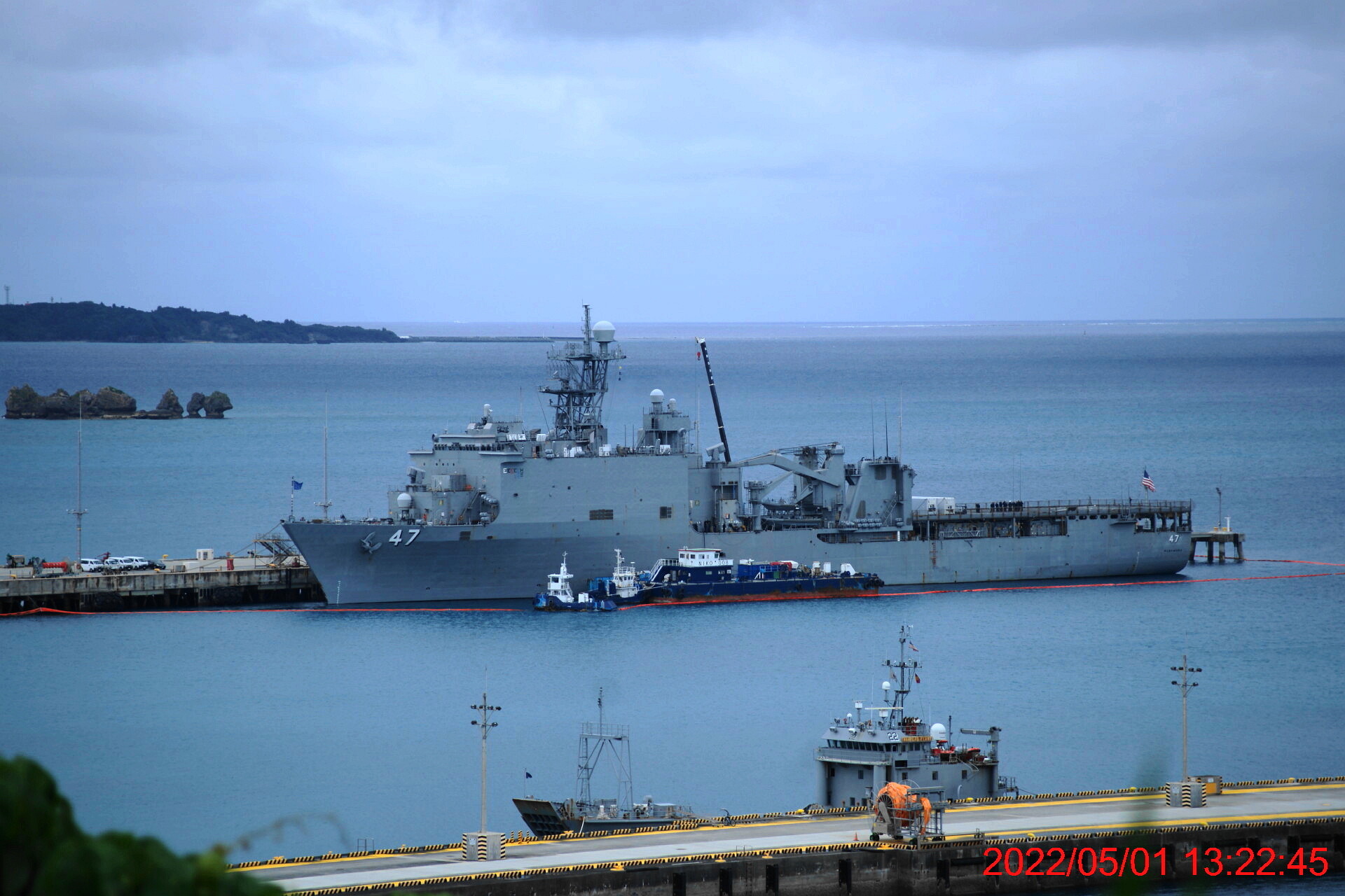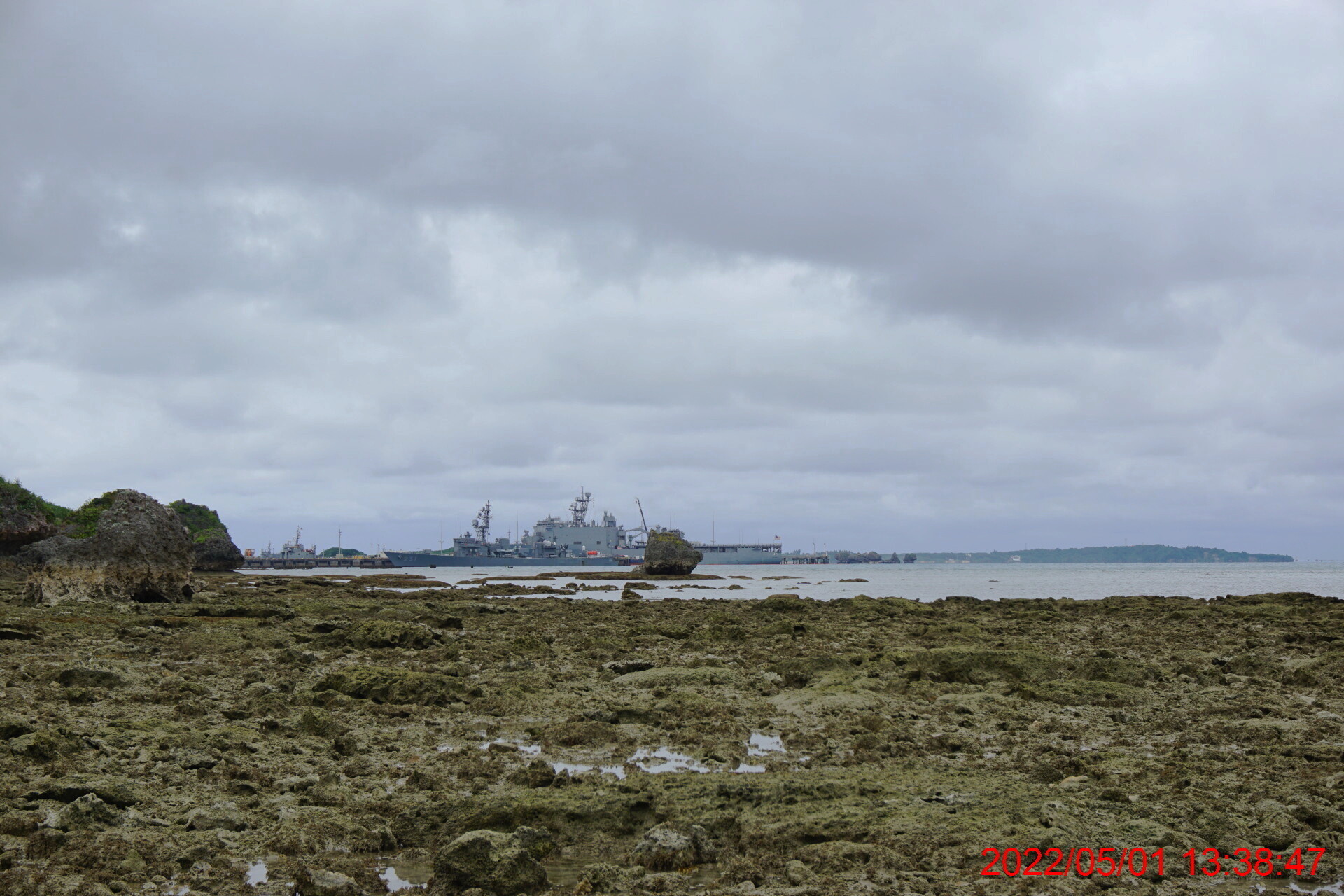 干潟より見るホワイトビーチ軍港