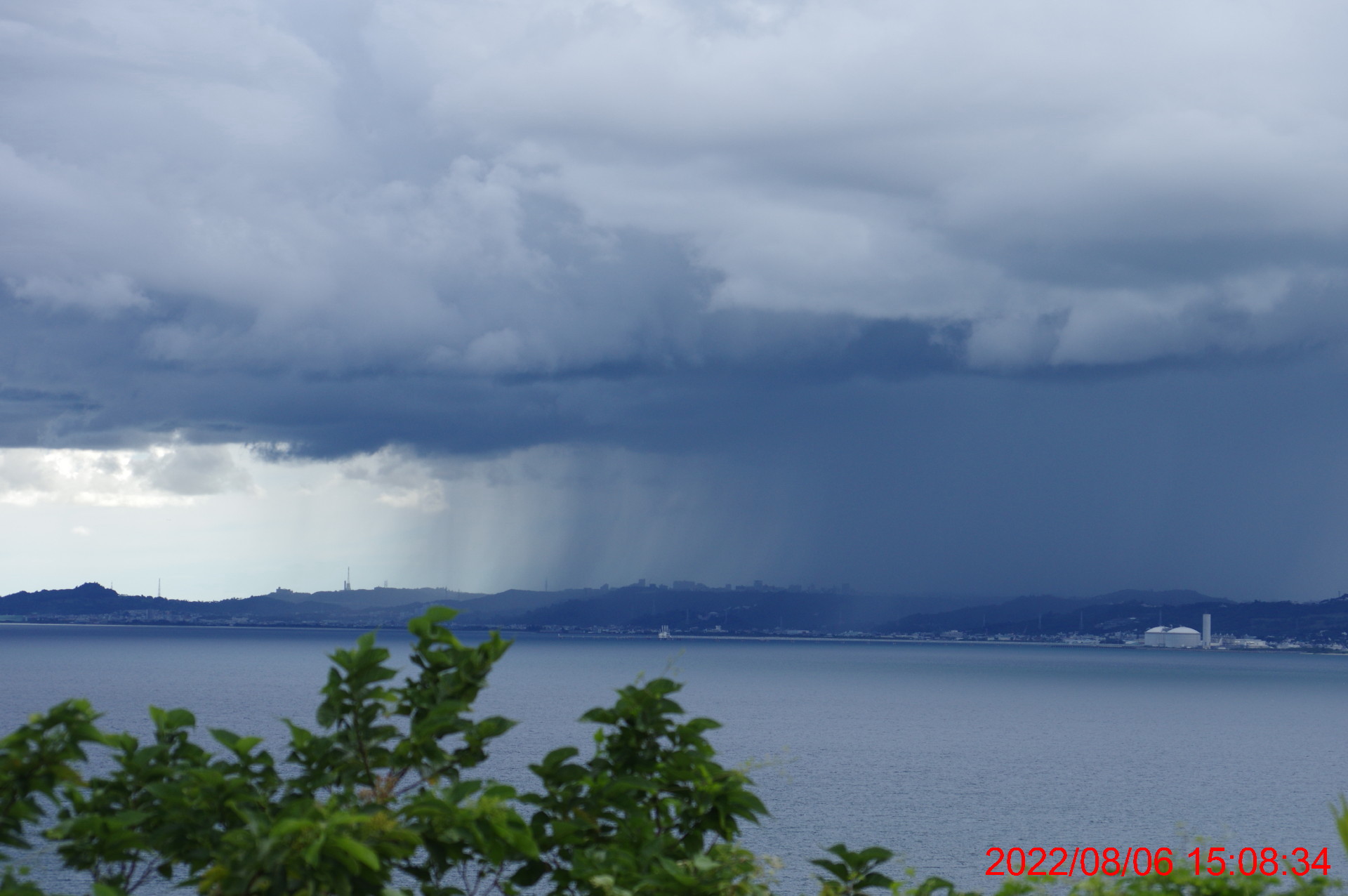 雨雲が迫る中での出港