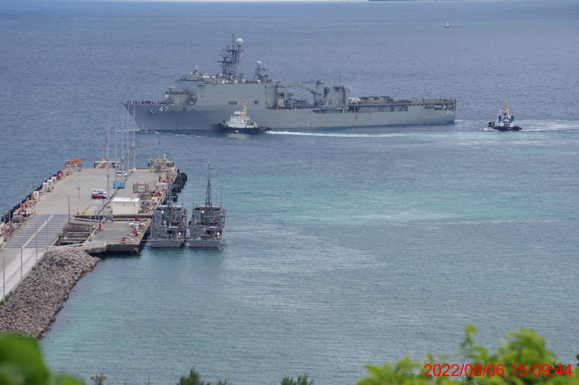 アメリカ海軍 「ミゲル・キース」ESB-5 もホワイトビーチ軍港海域で