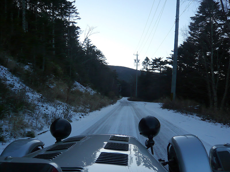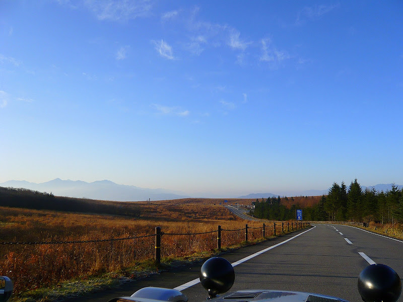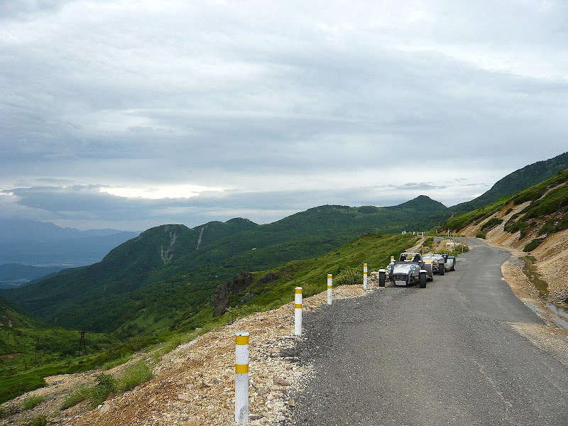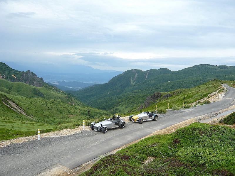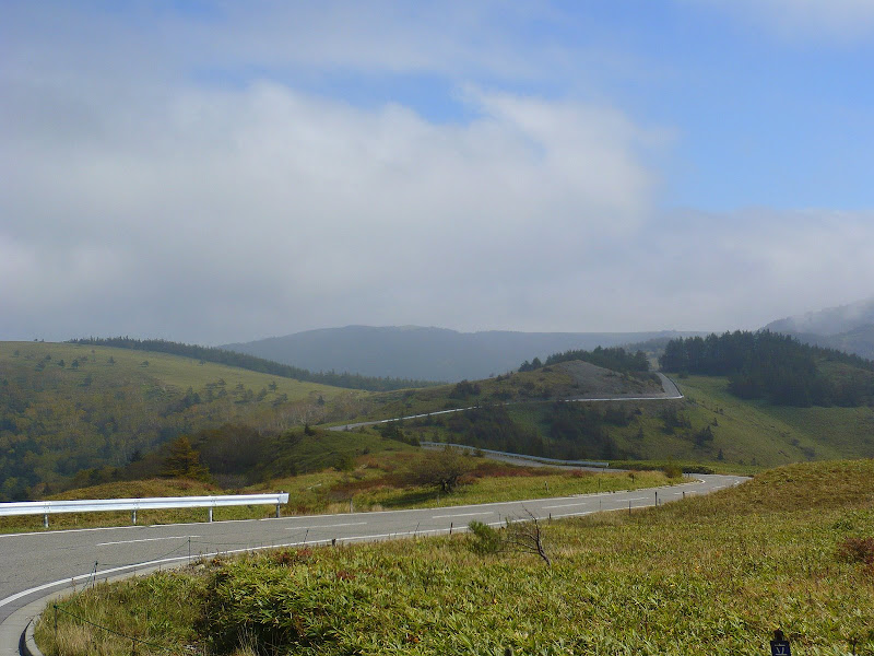 草津を通過し、硫黄の匂いが立ちこめる道を、遅い車に先導されながら登っていく。