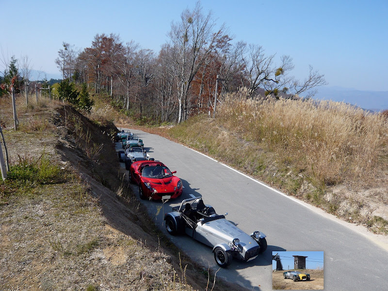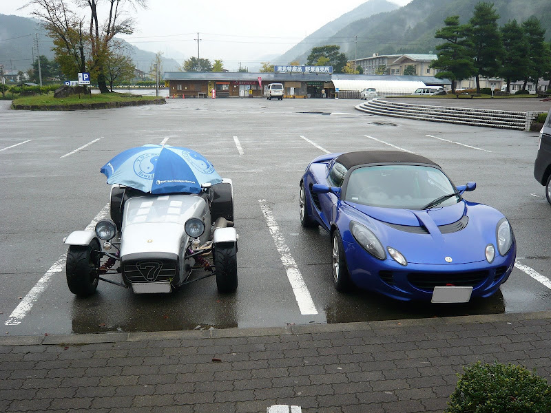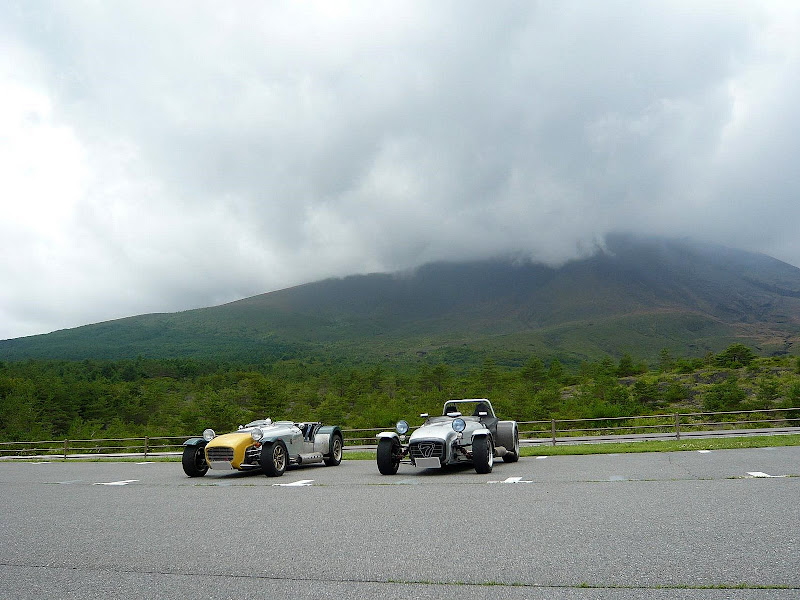 牧歌的風景の中に佇む2台のセブンを見てみると、朝方のウエット走行と、先程の路肩ダート走行で、気の毒なほど汚れきっている。