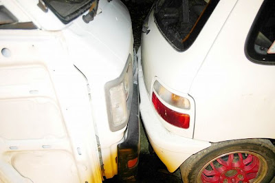 右クオーターパネルがグッシャリ