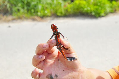 アカハライモリ、朝に田んぼで捕れるらしい。