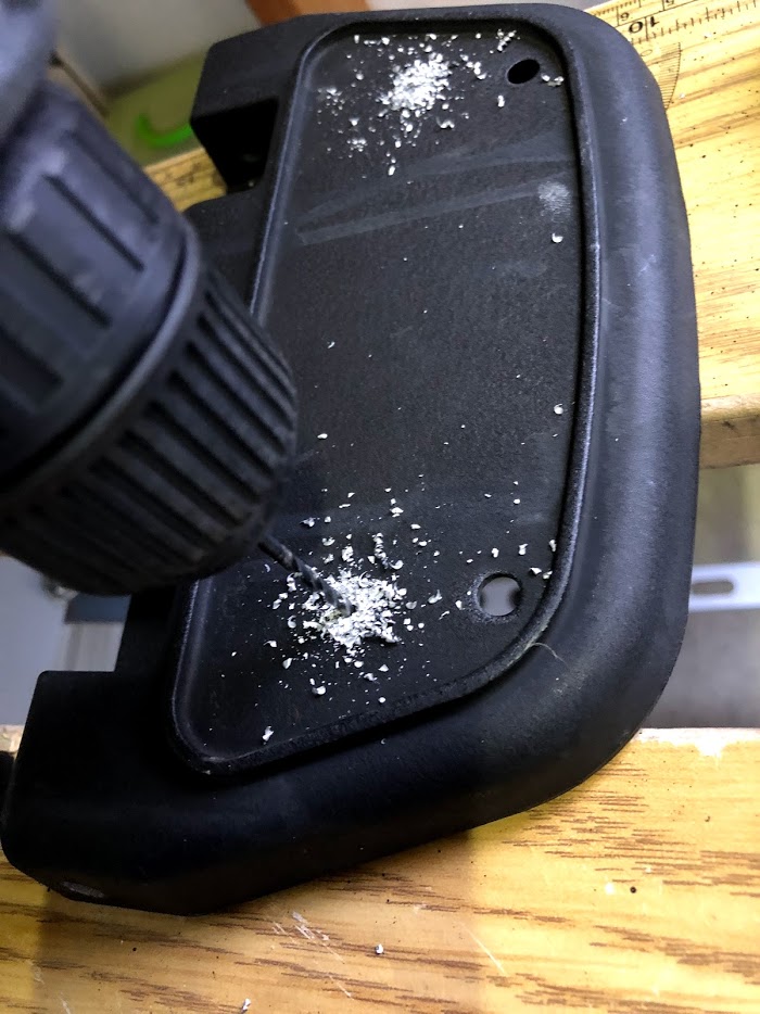 ポンチでボルト穴の位置を打ち込み、おもむろにドリルで穴を