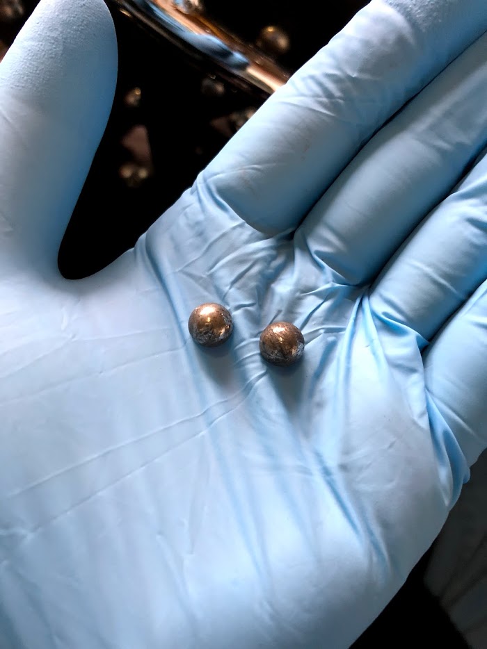 こうしてブラケット部分の穴に金属球を入れて、フットボードを