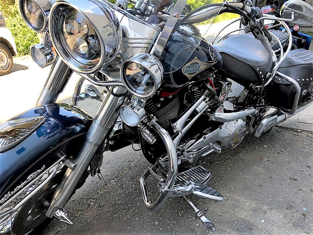 会社のバイク置き場は,同じハーレーでもスポーツスターまでなら大丈夫なんですけどね~ソフテイルやツアラーなど全長が長いとはみ出てしまいます。