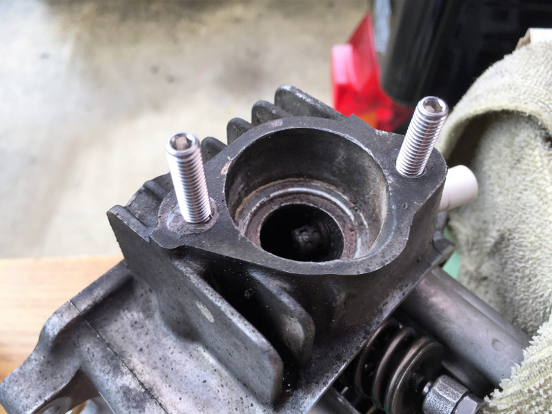 ハイカムの組み直しをしたんで、シリンダーヘッドを裏返し、折れたスタッドボルトの状況を確認したら。。。