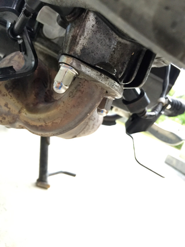 なので、そこまでスタッドボルトを締め込まず、キャップボルトでマフラーフランジを締め込む感じで取り付けました。