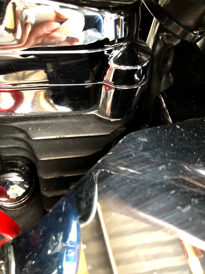 カバー下からのオイル漏れや、滲みが出ているシリンダーベース面を