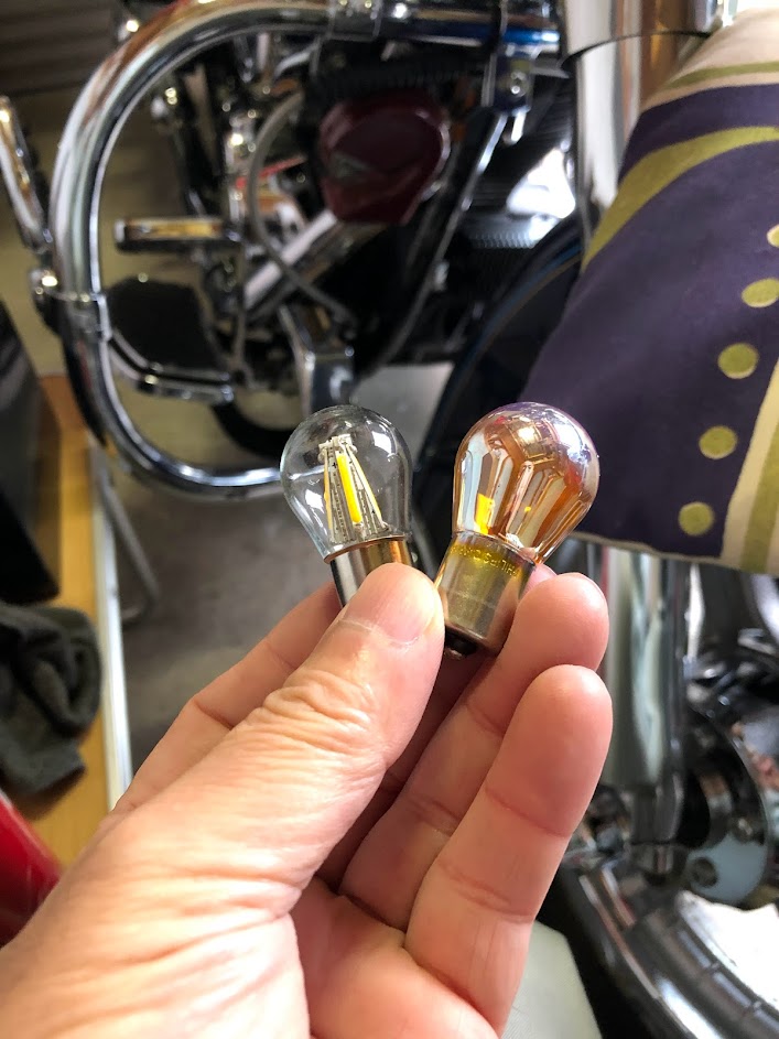 次にフロントウインカーのバルブをLEDから電球タイプに交換します。