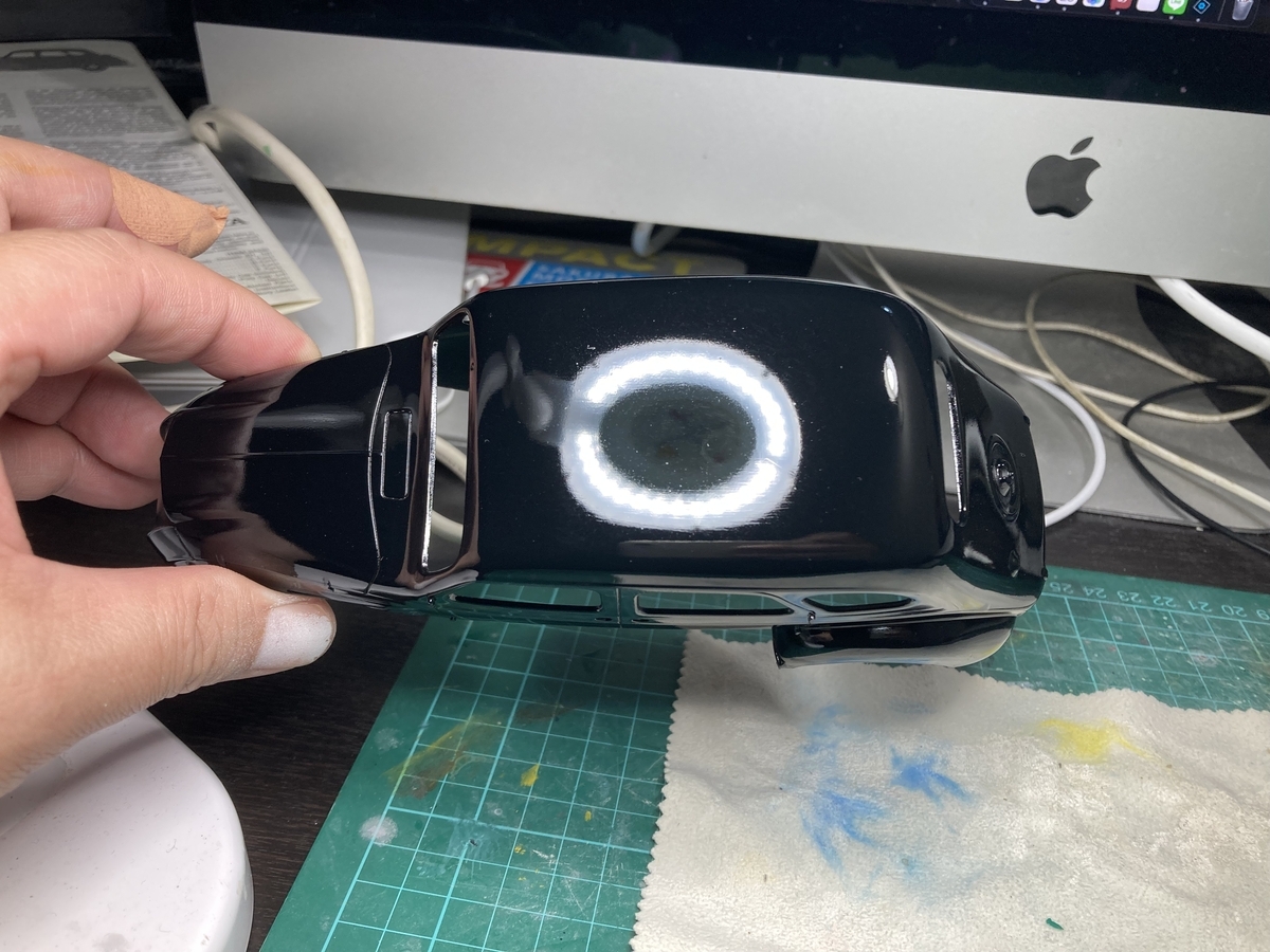 手を抜かずに下地を鏡面まで追い込むと、塗料が乗った時の発色と平滑さがこれほどまでに化けるとは。作業半ばにして、すでに最高の満足感に包まれています。