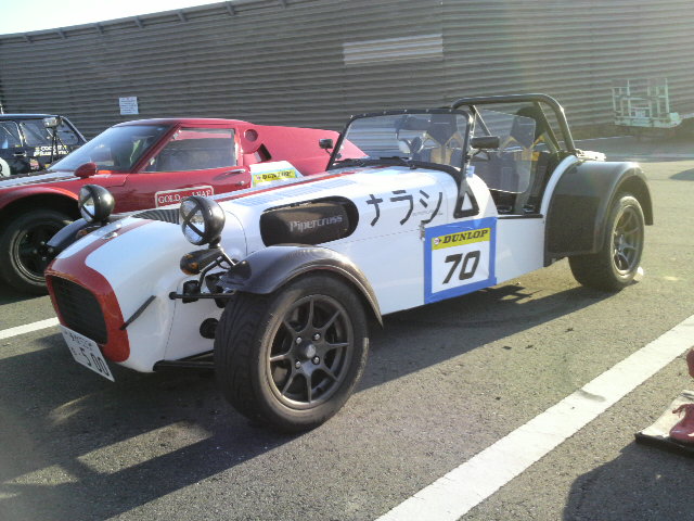ケータハムスーパーセブンR500です。排気量2000ccで6速シーケンシャルミッションだそうです。日本にはまだ数台しか入ってきてないとか・・・STTACKのメーターがアナログの雰囲気に似つかわしくないですが、カーボンパーツ満載でチョーカッコイイクルマでしたよ。ちなみにオーナー様は女性でした。ステキ。