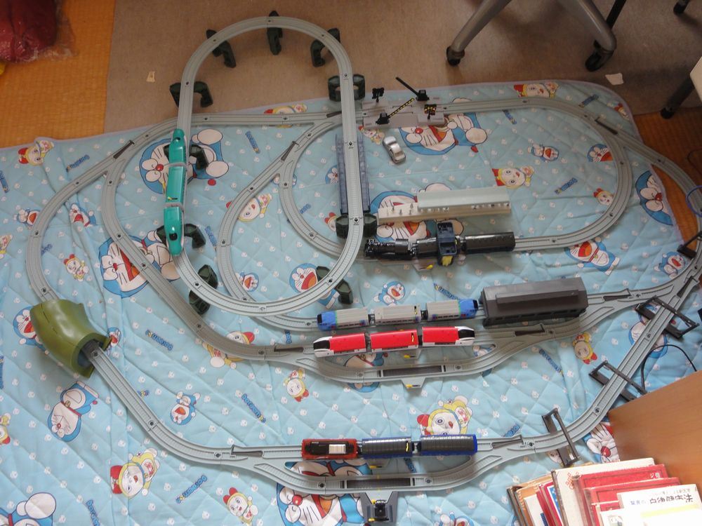 ダイソーでプラレールで、この前よりレールを追加かして一応レール〔車両基地風〕のレイアウトを作ってみました。