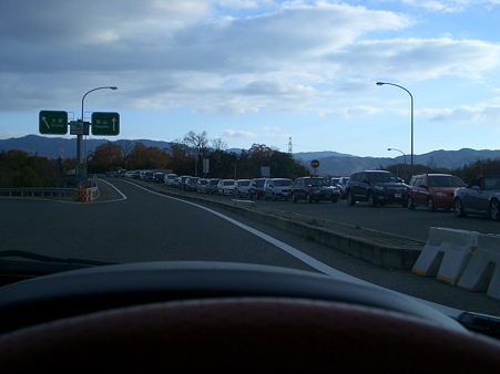げっっ・・・大渋滞(爆) (ナビ上は後4分で到着になってるのに高速上案内板は100分だと!)