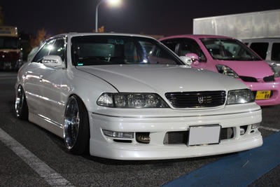 たまたまオフ会をやっていて車高短な強そうな車が沢山駐車されていて