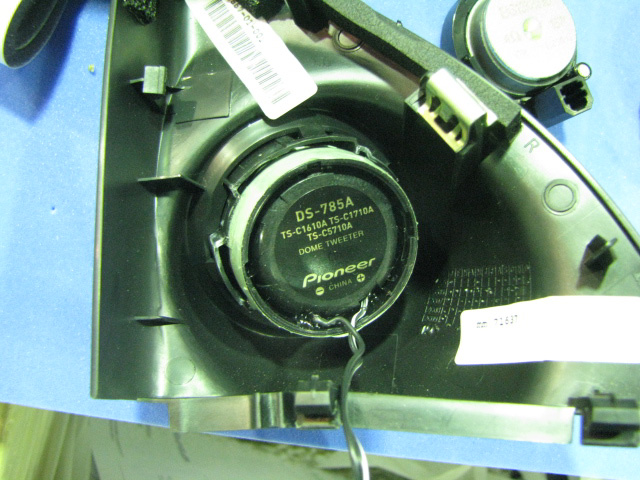 その裏側の三角コーナーから純正ツイーターを外して TS-C1710A 付属のツイーターと比べてみました。