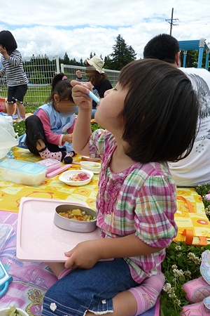 お昼は、昨年と同様、カレーでしたが、今年は外でお友達と一緒に。
