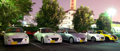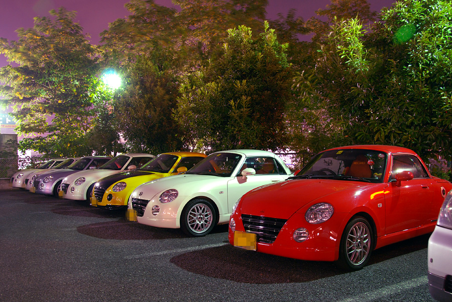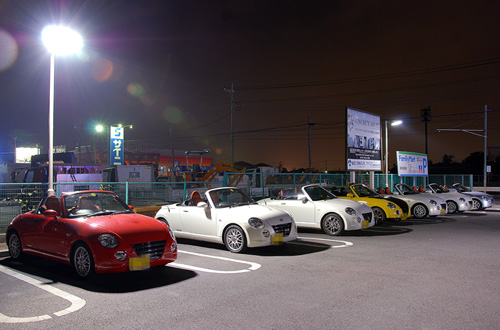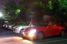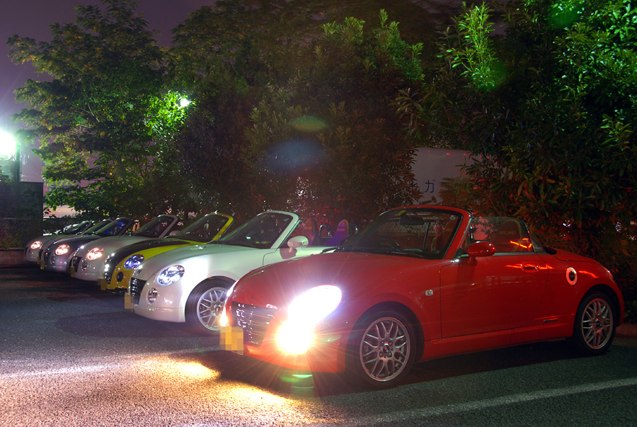 夜なので、カルガモしてても、あまり前の車がコペンだーって見えないのが寂しいところだけど、以前のオフでは分断されちゃって出来なかったので、7台ものコペンでのカルガモ走行は初めて♪