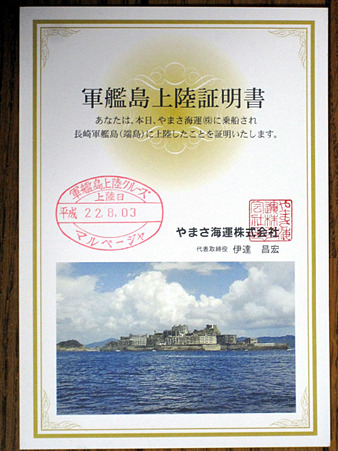 軍艦島上陸証明書を下船時に頂きました♪