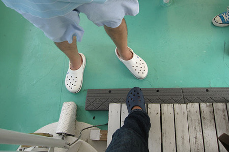 サンダルはダメとの事で、100円を出してこの黒い靴を借りる羽目に^^;