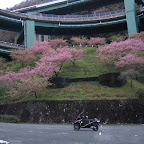 高速道路はつまらないので、一般国道でトコトコと、天城峠手前のバス停で仮眠し小雨降る天城峠を越え、ループ橋の河津桜で記念写真。