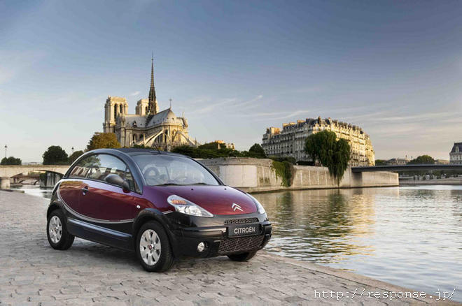 なつかしの名車 2CVをイメージした C3 パリモーターショーでお披露目!さすがと言うか 強引なカラーリングが いかにもシトロエンらしいですね。