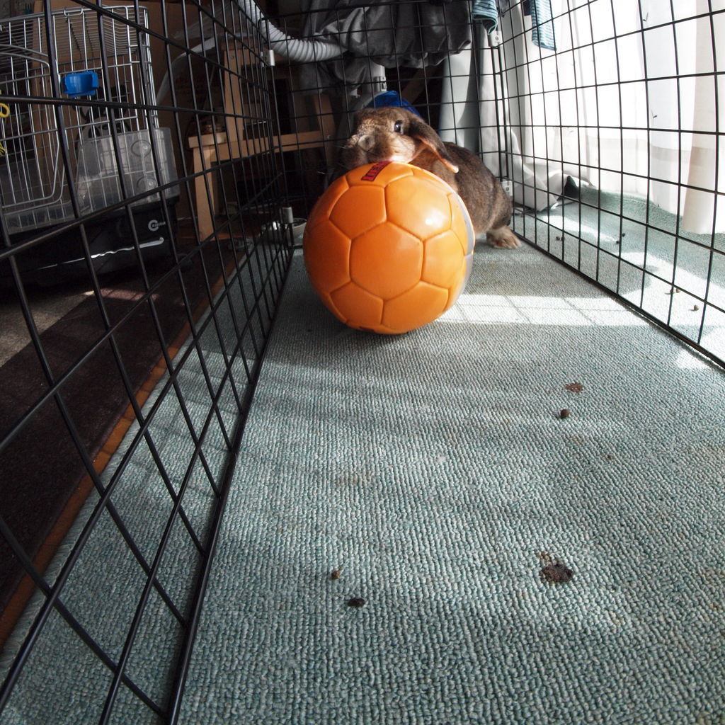 檻の中(遊び場)に入って一緒に遊んでます。