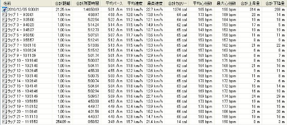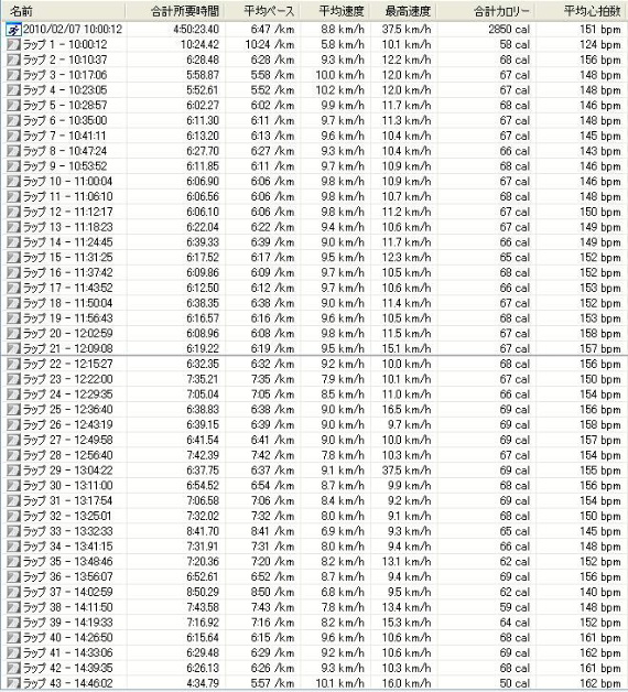 ※後半に差し掛かるといよいよ7分台のLAPが出現。給水所でバナナを食べたりするものの、なかなか走り出せなくなったのが原因