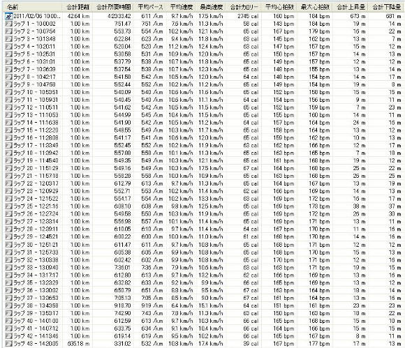※その後は6分台で走り続ける。給水所に寄ったりトイレなどでタイムのバラツキが見られる