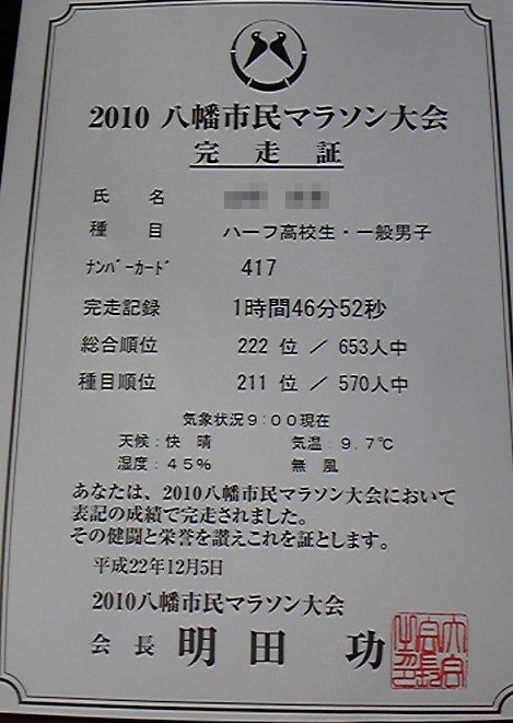 タイムは1時間46分52秒・・・、前年の2時間9分からは23分もタイムアップすることができました指でOK