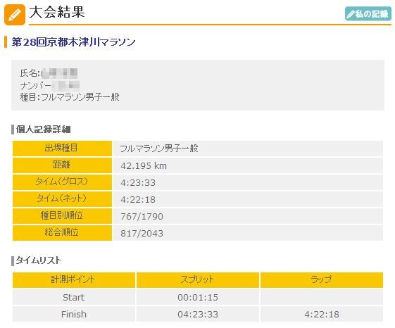 タイムは4時間22分18秒指でOK