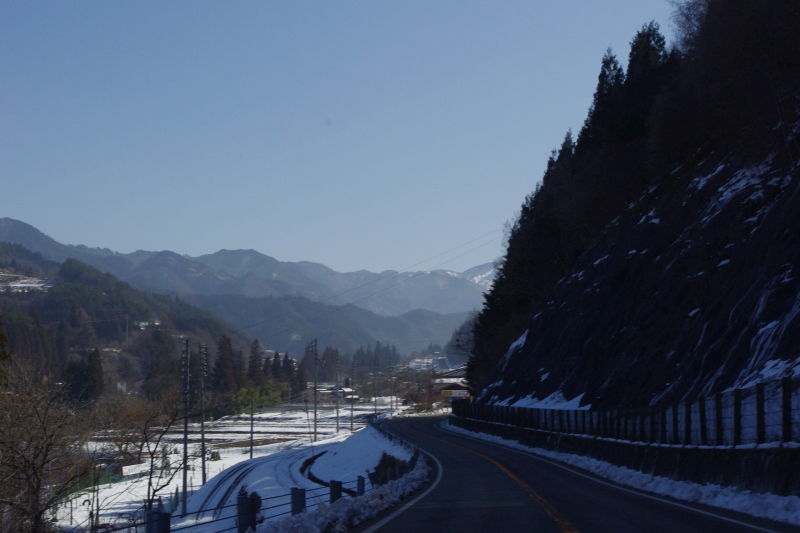 峠を越えると雪は次第に少なくなりました。