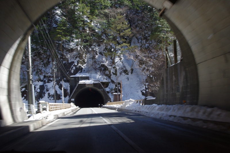 御母衣湖の周辺は幅の狭いトンネルやスノーシェッドの連続です。