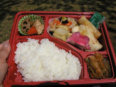 左の石に腰掛けて、桜見ながらお弁当食べてきました