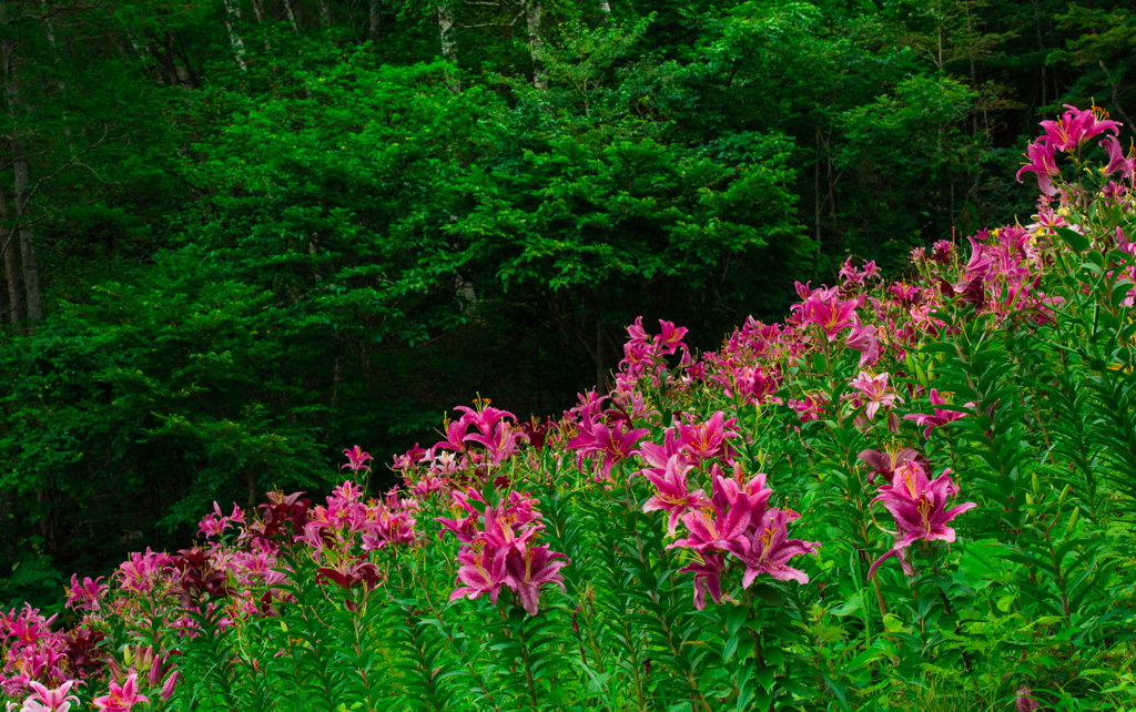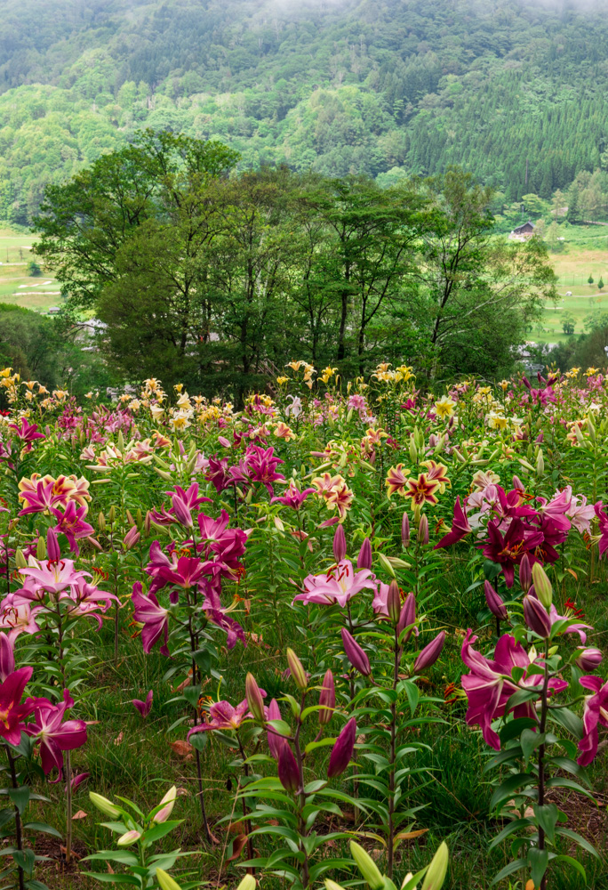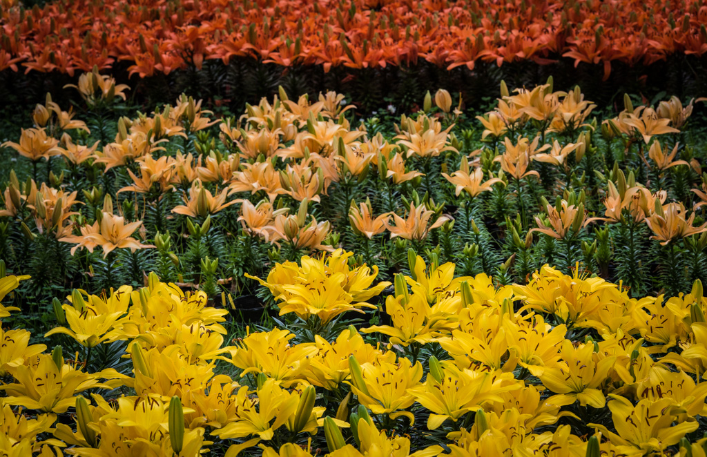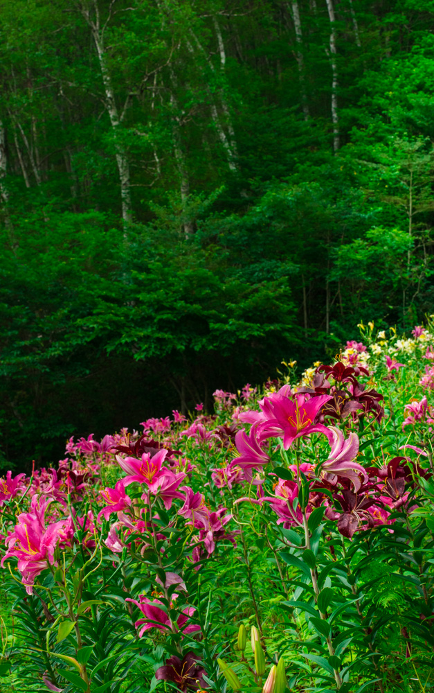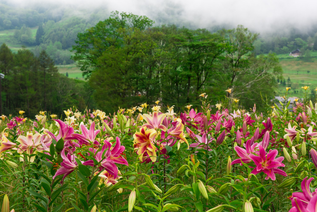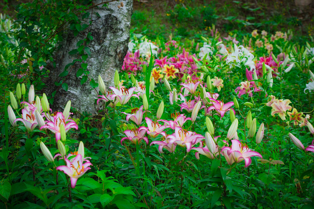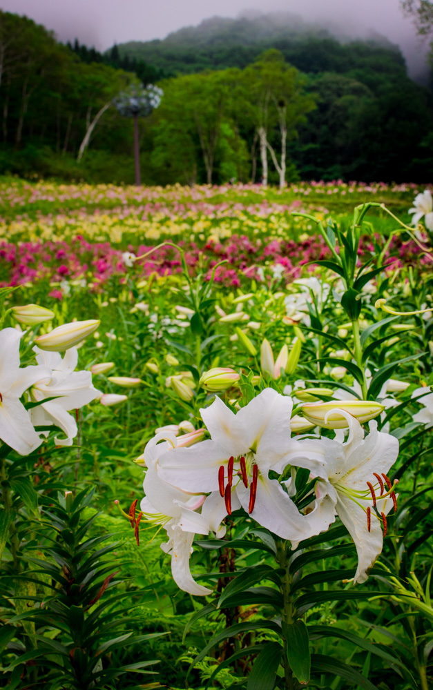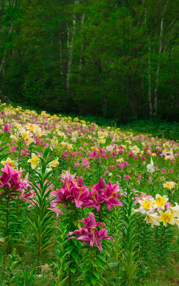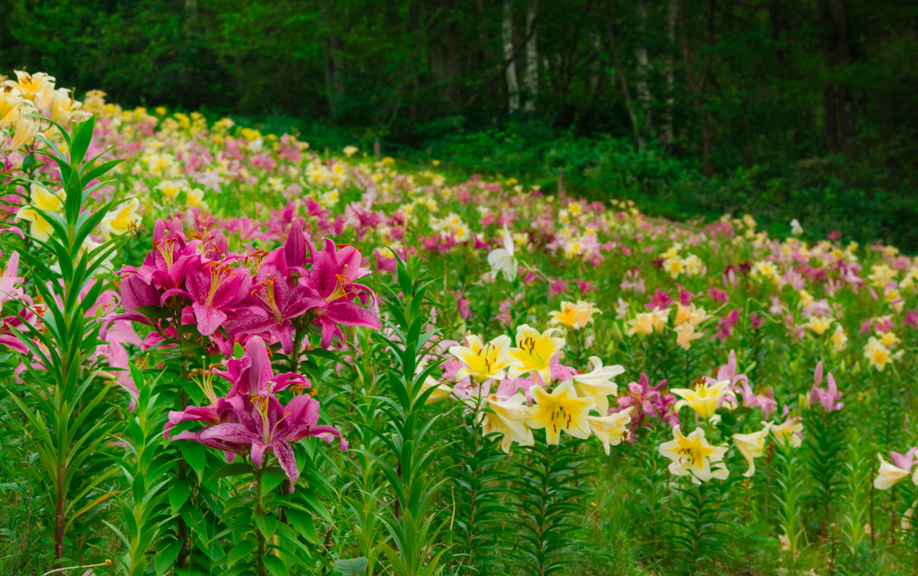 様々な色のユリが群生する様は見事でした。