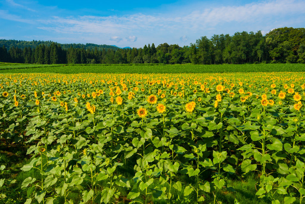 夏の青空と向日葵が撮りたくてネットで検索したら津南の向日葵畑がヒットしたので行く事に。