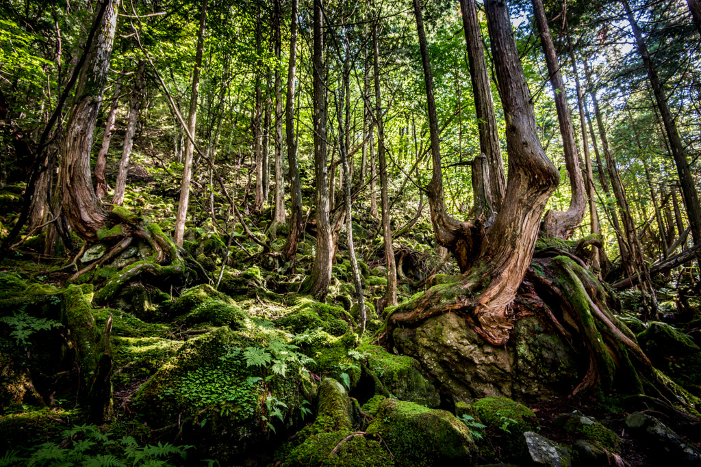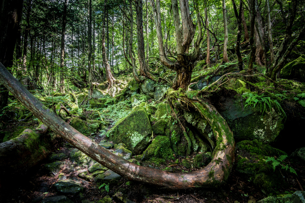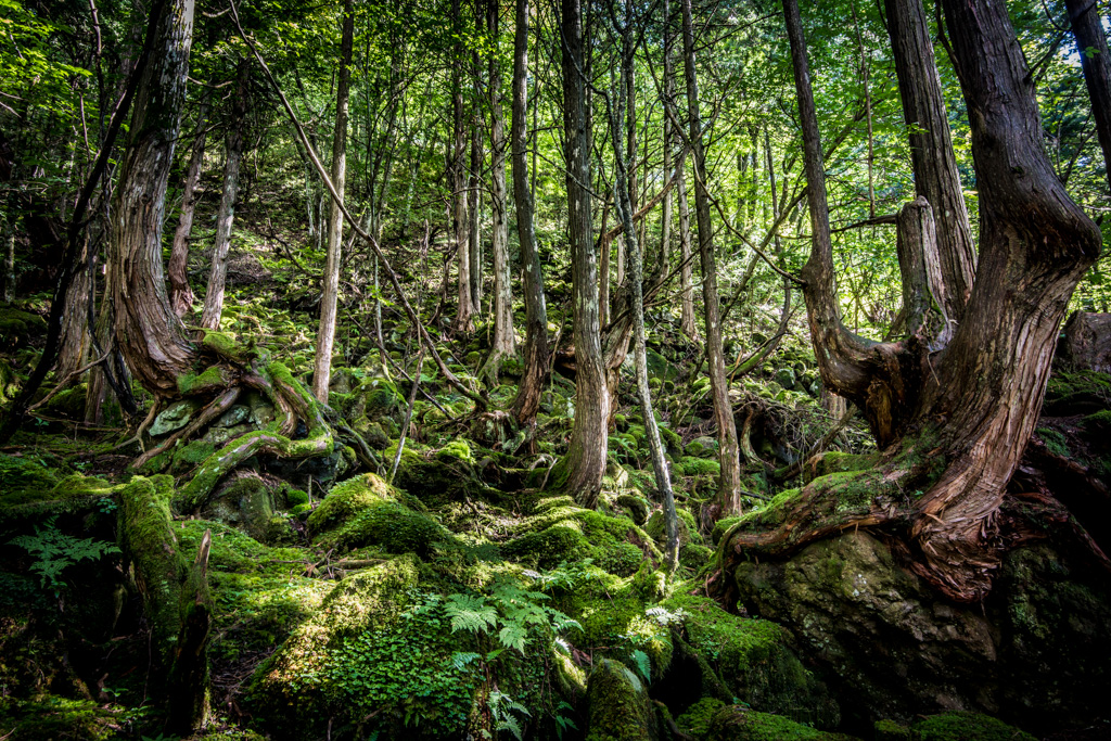 またその道すがらこれまた苔むした原生林が観れる所です。
