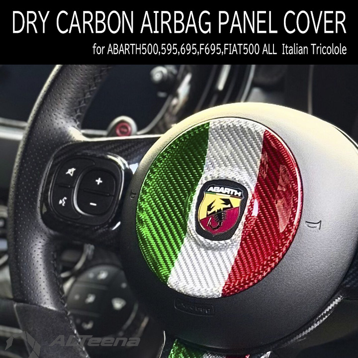 ABARTH500,595/695 ドライカーボン製エアバッグパネルカバー(グロスイタリアントリコローレカラー) for シリーズ1-6 by ALTeena