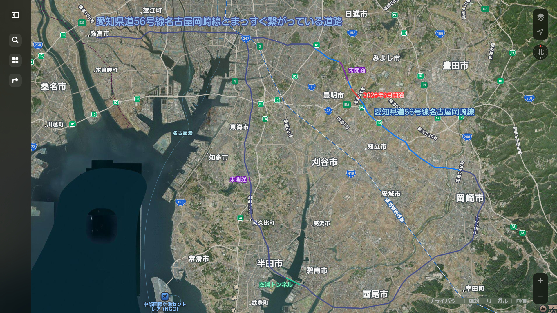 この開通で、残すはオアシス橋工区の拡幅と、豊明中央工区の未開通区間ですね。