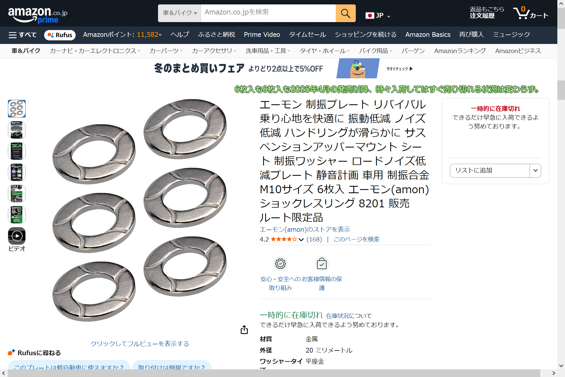 その時は6枚入が在庫あり即納で8枚入が2週間以内のお届けという状態で、