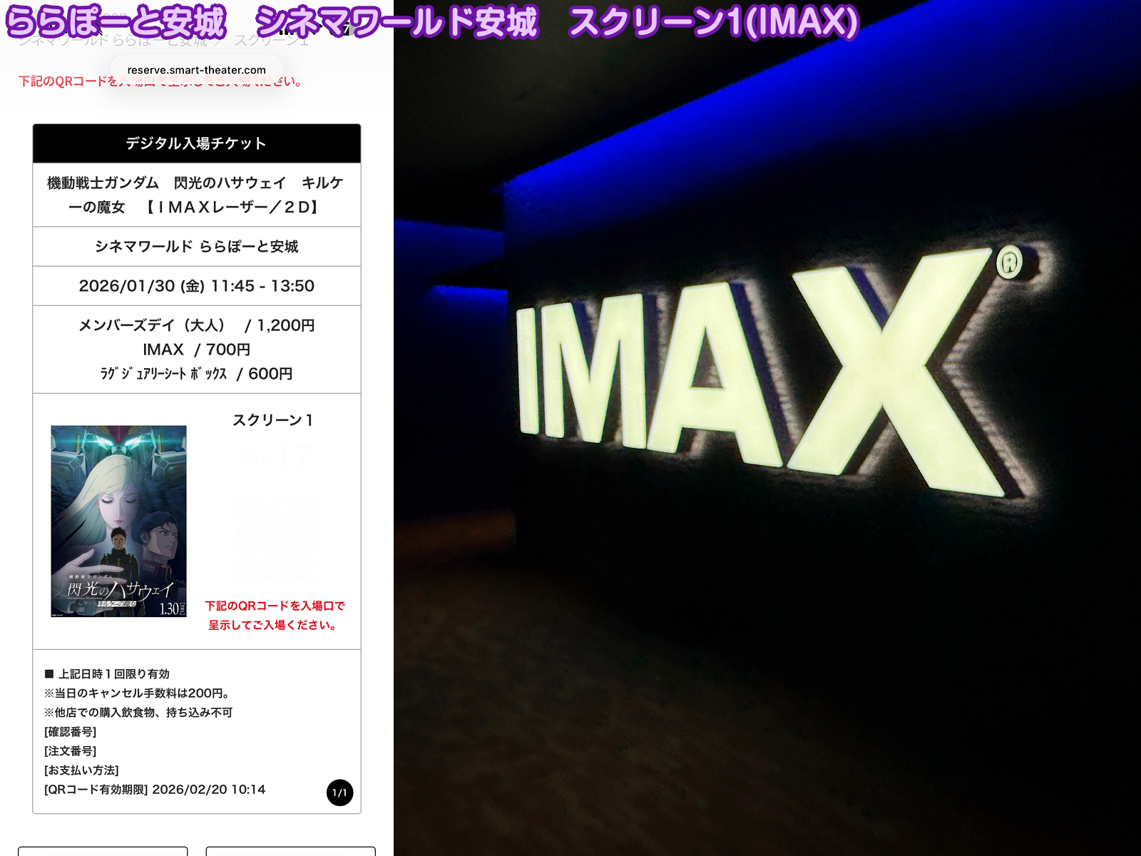 昼間の通常料金¥2,000から大差無く快適なIMAXで見られるので良いですね。