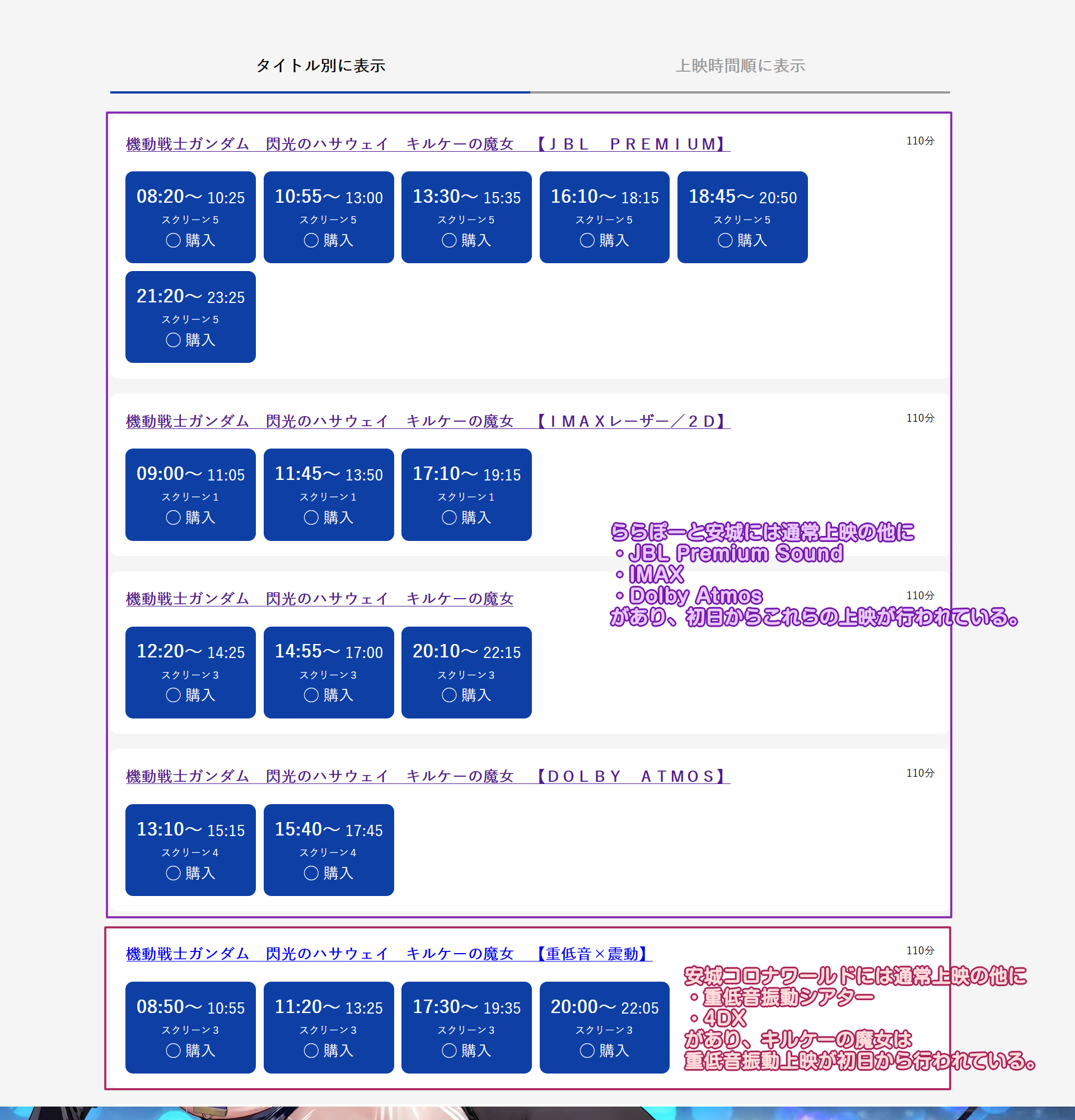 "キルケーの魔女"は"4DX"以外のラージフォーマット上映が充実しています。